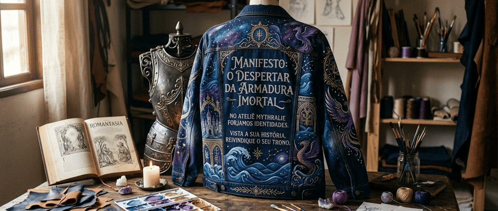 Cada traço de tinta e cada ponto de bordado é um juramento de exclusividade. Nossas jaquetas e telas são artefatos de poder, moldados para aqueles que buscam a sofisticação da aristocracia medieval unida ao mistério do cosmos.